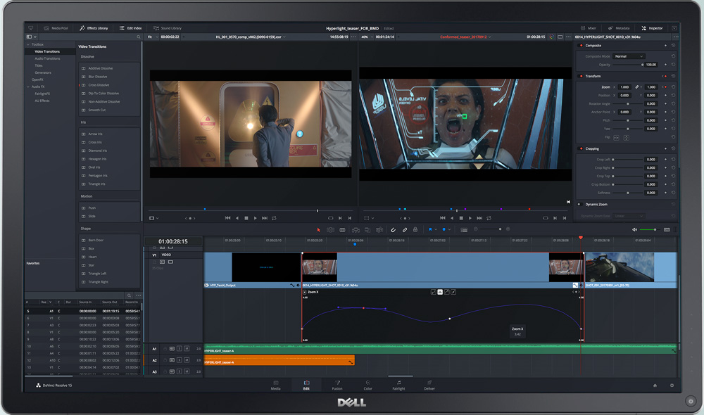 DaVinci Resolve 15 задает новые стандарты постпроизводства. Система позволяет одновременно с грейдингом выполнять монтаж видео и звука в рамках одного проекта. Теперь перед цветокоррекцией и созданием аудиодорожки не нужно сводить материал и ждать конечной копии на основе EDL. Все три процесса могут быть параллельными, а значит, у колористов и редакторов будет больше времени на поиск творческих решений!