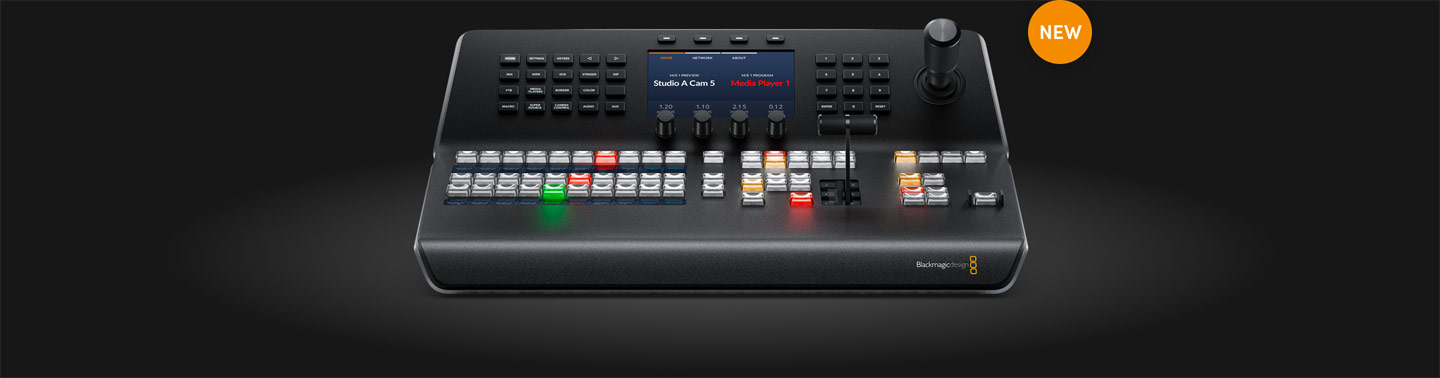 Если динамичные условия прямого эфира требуют быстрого переключения на профессиональном уровне, можно дополнительно использовать аппаратную панель, которая доступна в двух вариантах исполнения — сверхкомпактная модель ATEM 1 M/E Advanced Panel или полнофункциональная консоль ATEM 2 M/E Broadcast Panel. Они оснащены высококачественными кнопками, ручками и другими элементами управления для работы в ответственных условиях круглосуточного прямого вещания с полным контролем всего функционала видеомикшера.