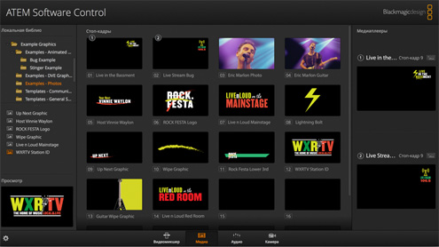 В комплект поставки ATEM входит программная панель для компьютеров на платформах Mac и Windows. Это приложение обеспечивает полный визуальный контроль и настройку параметров видеомикшера, позволяет загружать графику в библиотеку мультимедиа, использовать звуковой блок, управлять камерами, устанавливать цветовой баланс и выполнять другие действия. С его помощью можно без труда работать в ограниченном пространстве и при этом использовать все функциональные возможности устройства.