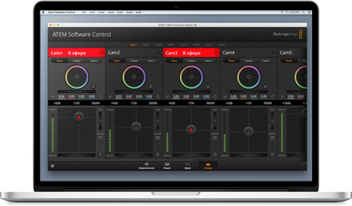 Панель ATEM Software Control обеспечивает полноценный контроль параметров камеры. При работе с Blackmagic URSA Broadcast и Blackmagic Studio Camera для этого используется входящий