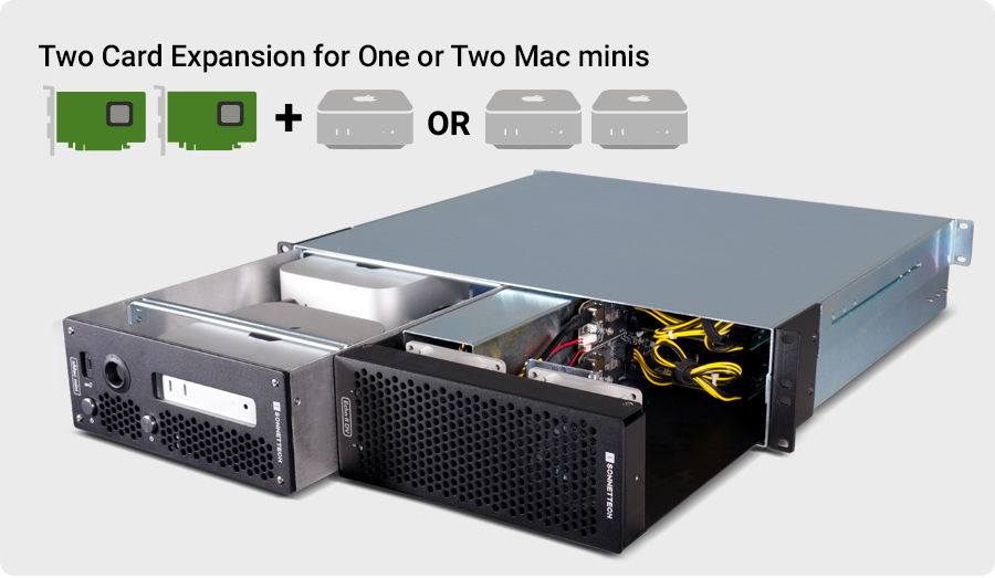 - Компактная установка для двух Mac mini и двух требовательных карт PCIe
