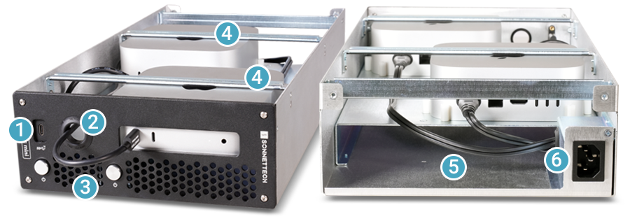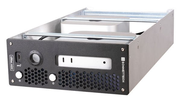 Модуль xMac mini (2024+) позволяет надежно разместить один или два компьютера Mac mini (2024+) в прочной стальной раме, предназначенной для установки в совместимый настольный или рэковый корпус Sonnet. Корпус обеспечивает свободный доступ к кнопками питаниям на фронтальной панели модуля и к портам Mac mini на задней панели.