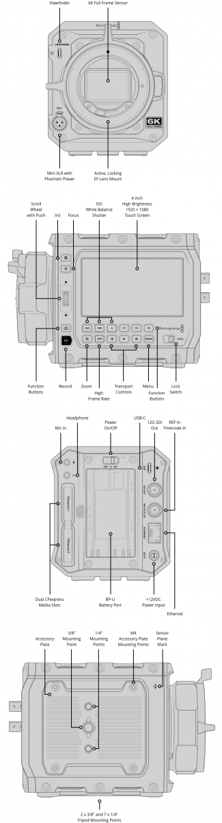 L-Mount . Автоматическая запись настроек камеры, данных датчика движения, а также данных хлопушки, таких как проект, номер сцены, дубль и специальные заметки. 3D LUT также может быть встроен в метаданные файлов Blackmagic RAW.