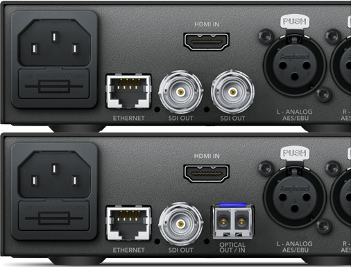 Оптический интерфейс становится все более популярным благодаря возможности передавать сигнал на большое расстояние даже при работе с 12G-SDI. Инфраструктура на основе оптоволокна проста в обслуживании и широко используется при создании компьютерных сетей. Каждая из моделей Teranex Mini предлагается в исполнении с оптическим интерфейсом. Это позволяет использовать HDMI-, аналоговую видео- и аудиотехнику, а наличие интерфейса 12G-SDI обеспечивает совместимость с традиционным оборудованием через