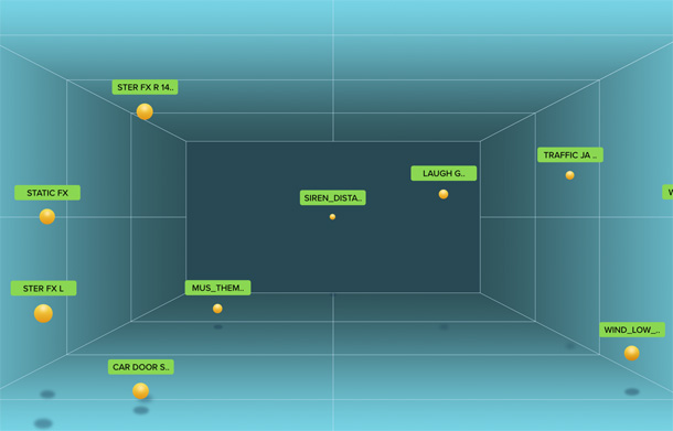 3D-звукПоддержка современных пространственных форматовБлок Fairlight поддерживает трехмерный звук в таких форматах, как 5.1, 7.1, DTS, Dolby и даже 22.2. Инструмент 3D Panner служит для выбора расположения в пространстве, 3D |