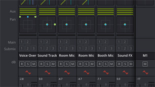 Инструменты Fairlight позволяют быстро и без труда создавать многослойные записи. На любом этапе воспроизведения можно выполнять перезапись отдельных фрагментов, а набор инструментов ADR обеспечивает повторное озвучивание диалогов.