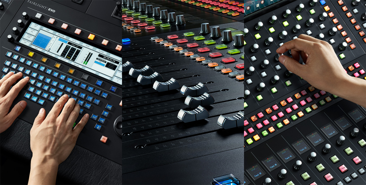 Консоли Fairlight имеют аппаратные органы управления практически для всех параметров и функций. Уникальный пользовательский интерфейс и удобная эргономика техники Fairlight позволяют быстро создавать конфигурацию для оптимального решения сложных задач быстрее, чем в любых других системах. Доступные модификации включают модели для установки на рабочем столе и отдельно как микшерный пульт.