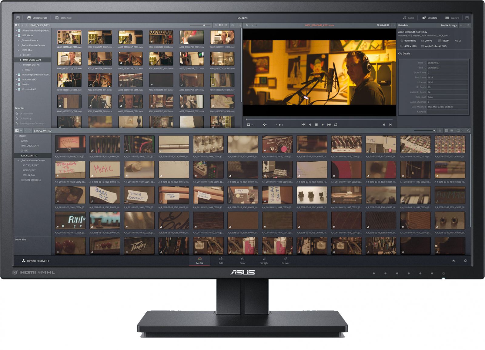 Для предварительного просмотра, импорта и управления материалами в приложении DaVinci Resolve предусмотрена страница Media. Копировать папки и загружать файлы из специальных хранилищ больше не нужно. Они остаются в своем первоначальном месте, а для использования в работе их достаточно перетащить в медиабиблиотеку проекта или непосредственно на монтажную линейку.