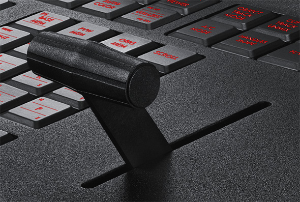 DaVinci Resolve Advanced Panel имеет выдвижную клавиатуру для ввода метаданных клипа, имен файлов и примечаний к маркерам. По окончании работы ее убирают обратно в панель управления.