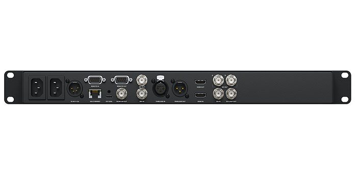 Рекордер оснащен интерфейсом 12G-SDI со сквозным выходом и 2 соответствующими разъемами для вывода файлов ProRes 4444 при выполнении кеинга в Ultra HD. Дополнительно предусмотрены порт 10G Ethernet для быстрой передачи контента и 2 силовых разъема под источники переменного тока.
