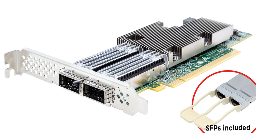 Двухпортовый Ethernet SmartNIC 100 Гбит/с с модулем QSFP28 в комплекте. Поддержка операционных систем macOS, Windows и Linux. Рекомендуется для использования в сфере обучения ИИ и с графическими процессорами, а также в базовой инфраструктуре Ethernet — везде, где критически важна пиковая производительность.