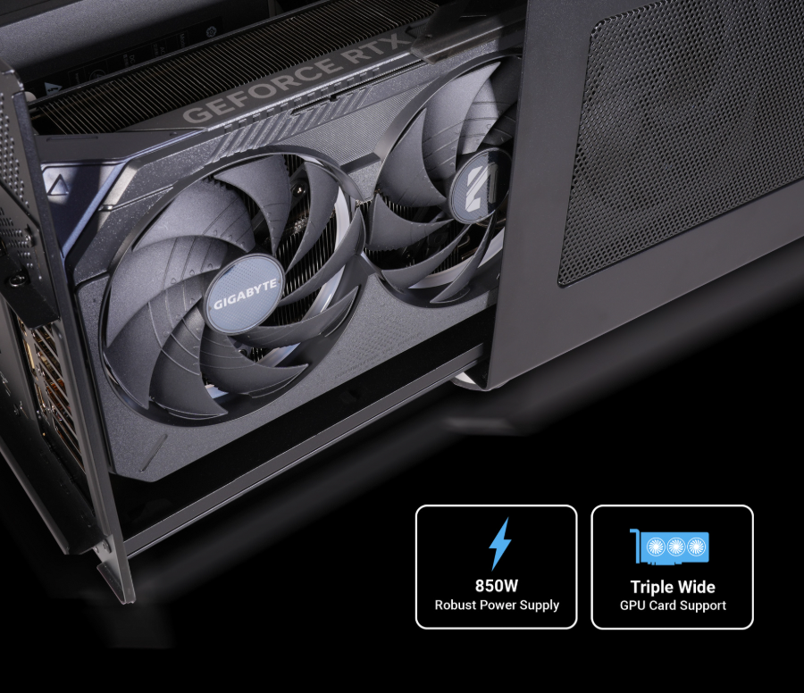 Разработанный для работы с самыми энергоёмкими и габаритными графическими процессорами, Breakaway Box 850 T5 — это простой апгрейд, который повысит производительность компьютера для профессиональной работы с видео, гейминга и нейросетями. Бокс поддерживает графические процессоры NVIDIA GeForce RTX 50, 40 или 30 тройной ширины, а также AMD Radeon RX 9000, 7000 или 6000 серий. Каждое новое поколение GPU обеспечивает большую вычислительную мощность, что влечет за собой более высокие требования к энергопотреблению. Благодаря мощному блоку питания мощностью 850Вт, Breakaway Box 850 T5 легко поддерживает современные топовые графические процессоры и готов к ещё более требовательным видеокартам будущего.