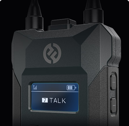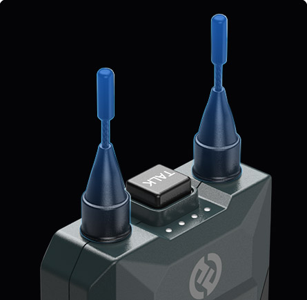 Панельная антенна интегрирована в базовую станцию. Минималистичный дизайн белтпаков предлагаетинтуитивно-понятное управление. Кроме того, настройка и группировка пользователей доступна с базовой станции, через мобильное или десктопное приложение.