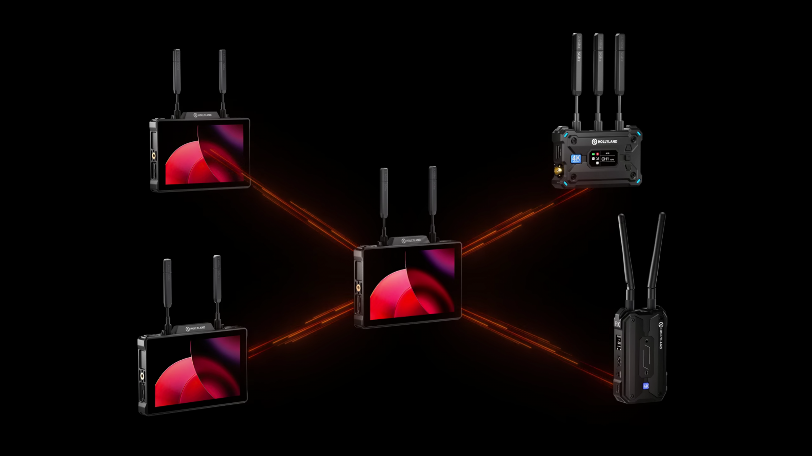Pyro 7 обеспечивает бесшовное подключение ко всем решениям для беспроводной передачи Hollyland. Вы можете быстро переключаться между двумя источниками беспроводного сигнала с помощью удобных кнопок.