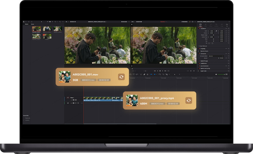 Запись в разрешении до 1080p и частотой 60 кадров/с с использованием видеокодека H.264 — идеальное решение для эффективной постобработки. Vcore автоматически определяет частоту кадров и таймкод камеры и записывает материал в контейнер .mov. Таким образом, записанный материал сразу можно импортировать в программы для монтажа, такие как Premiere Pro и DaVinci Resolve.