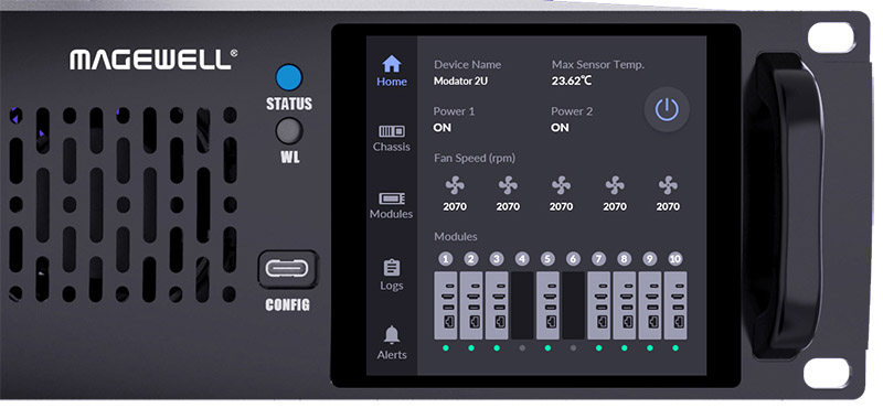 Система управляется через веб‑интерфейс или ПО Magewell Control Hub, поддерживает горячую замену модулей и интегрируется в существующие рабочие процессы, делая её оптимальным выбором для профессиональных AV‑сред, стриминга и вещания.