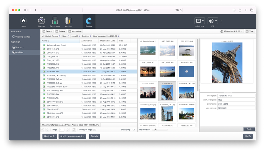- Предварительный просмотр и выбор из нескольких версий перед восстановлением